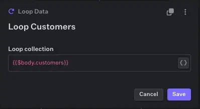 When you use actions inside a For Loop, each action’s output can be accessed as if it were an array. This feature allows you to retrieve data from any specific iteration of the loop. To access the output of an action in a specific iteration, use the following syntax:- For a fixed iteration (e.g., the first iteration):