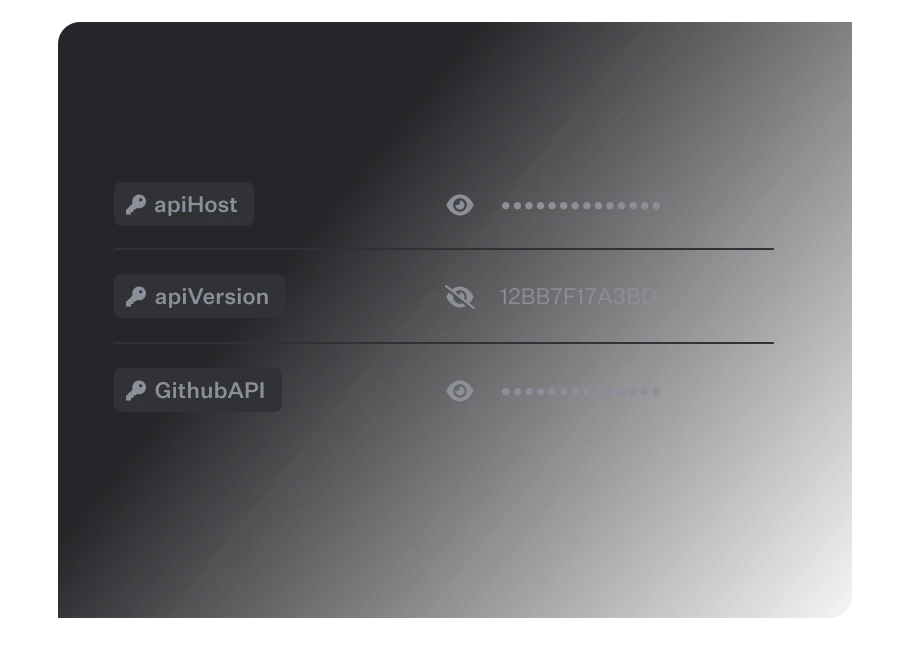 To set up your own environment variables, navigate to Settings > Project > Environment Variables. You can then easily create new variables or show, update and delete already existing ones.Usage